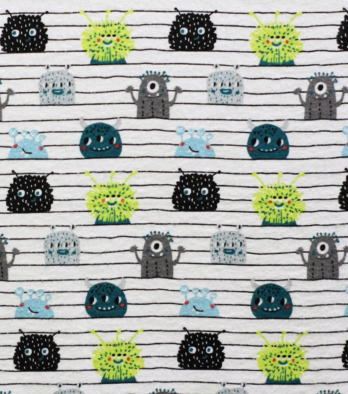White Smiling Monsters On Lines Super Snuggle Flannel Fabric