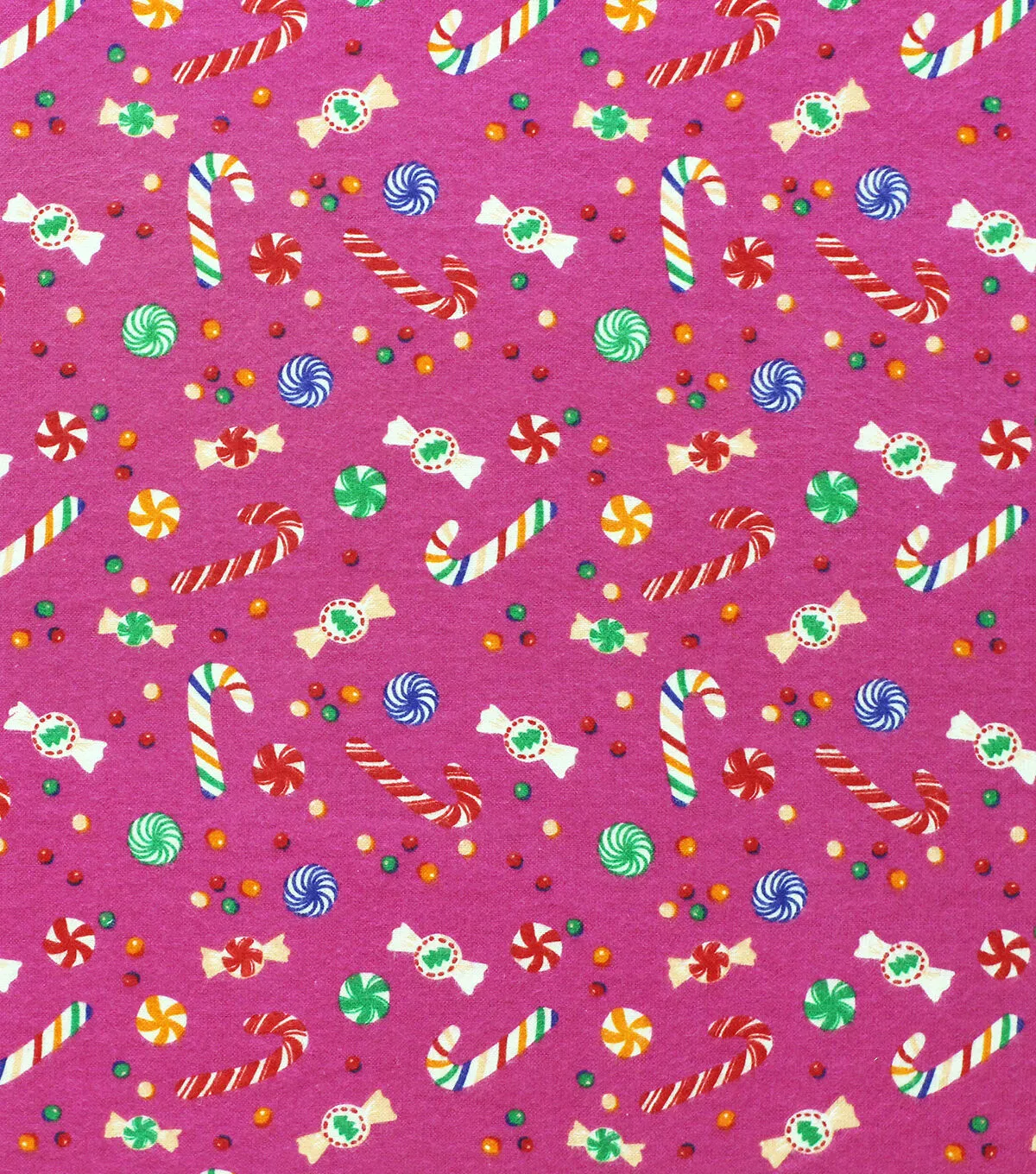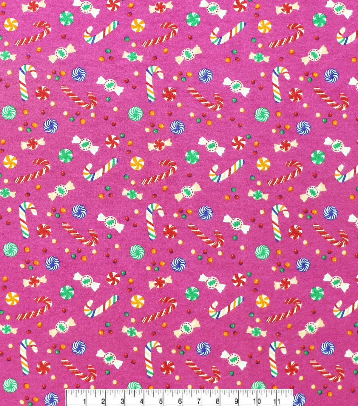 Candies on Pink Super Snuggle Christmas Flannel Fabric