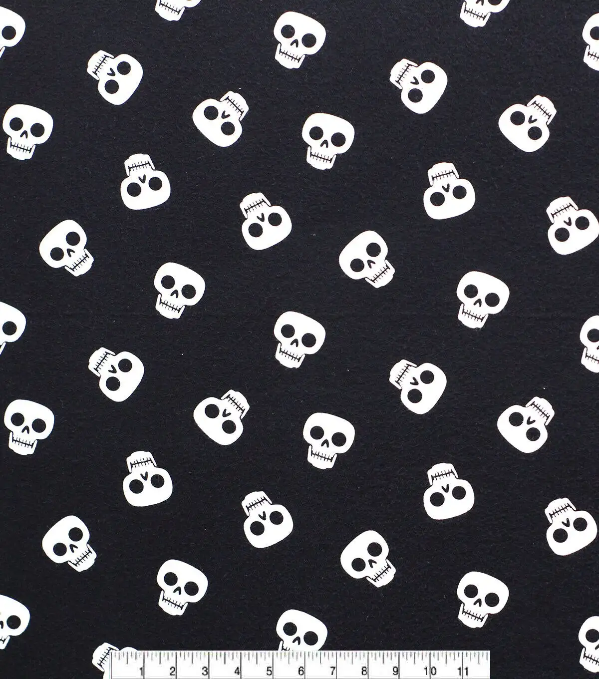 Skulls On Black Glow in The Dark Super Snuggle Flannel Fabric