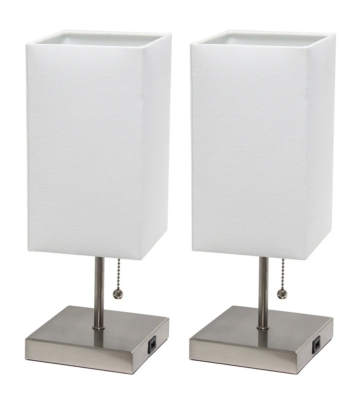 All The Rages Stick Lamp with USB Charging Port and Fabric Shade 2 Pack