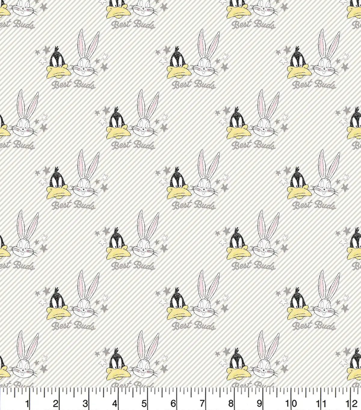 Looney Tunes Bugs Daffy White Flannel Fabric