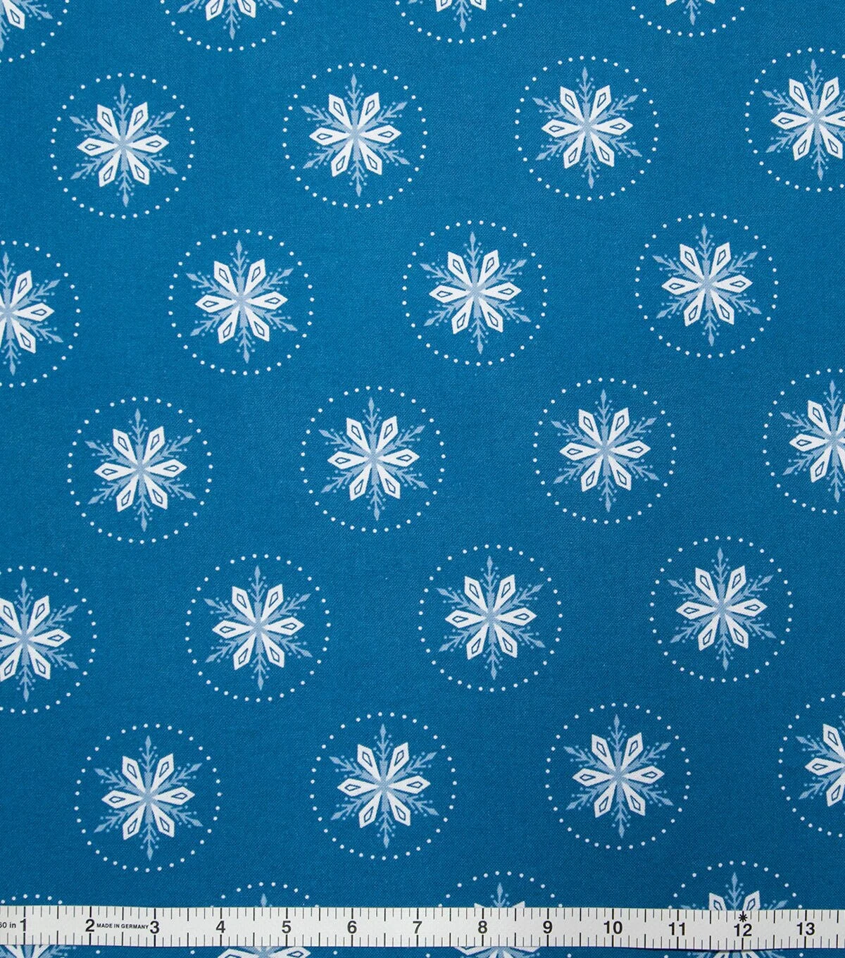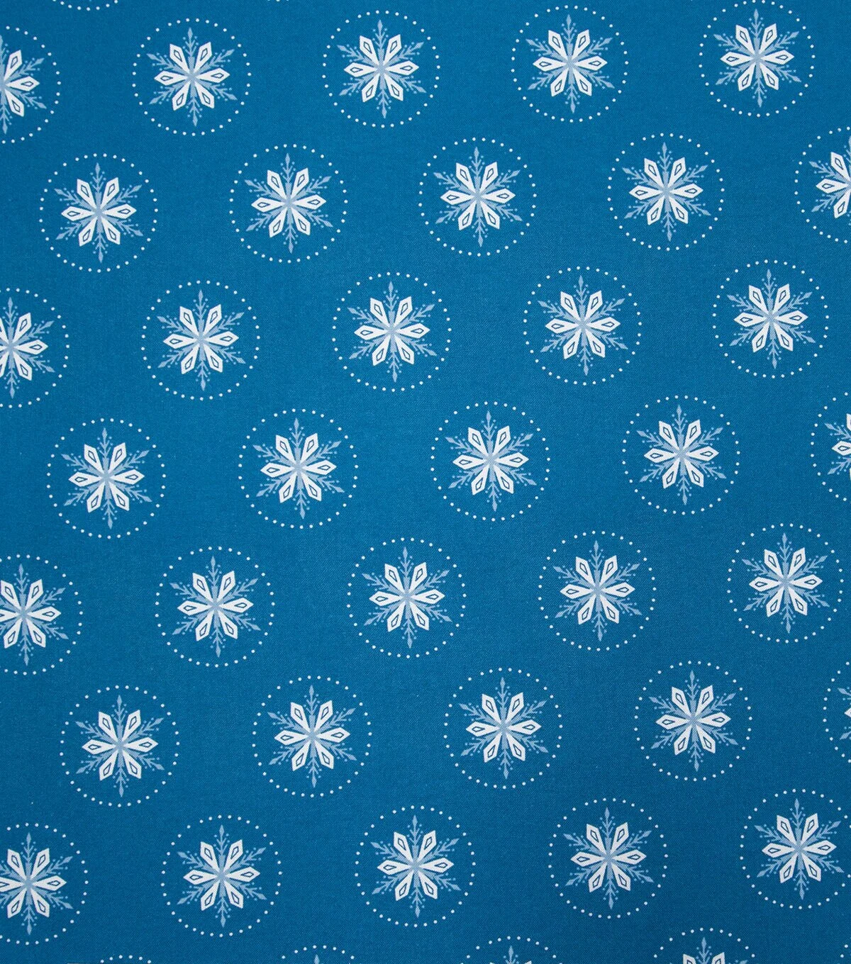 Super Snuggle Folk Snowflake On Navy Flannel Fabric