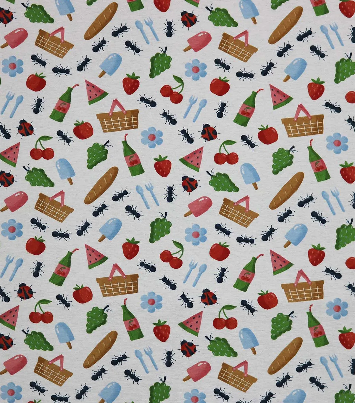 Picnic Icons on White Super Snuggle Flannel Fabric