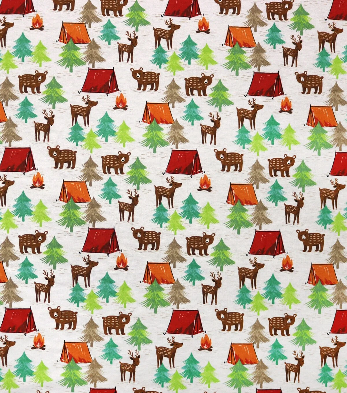 Sketched Animal Camping Super Snuggle Flannel Fabric