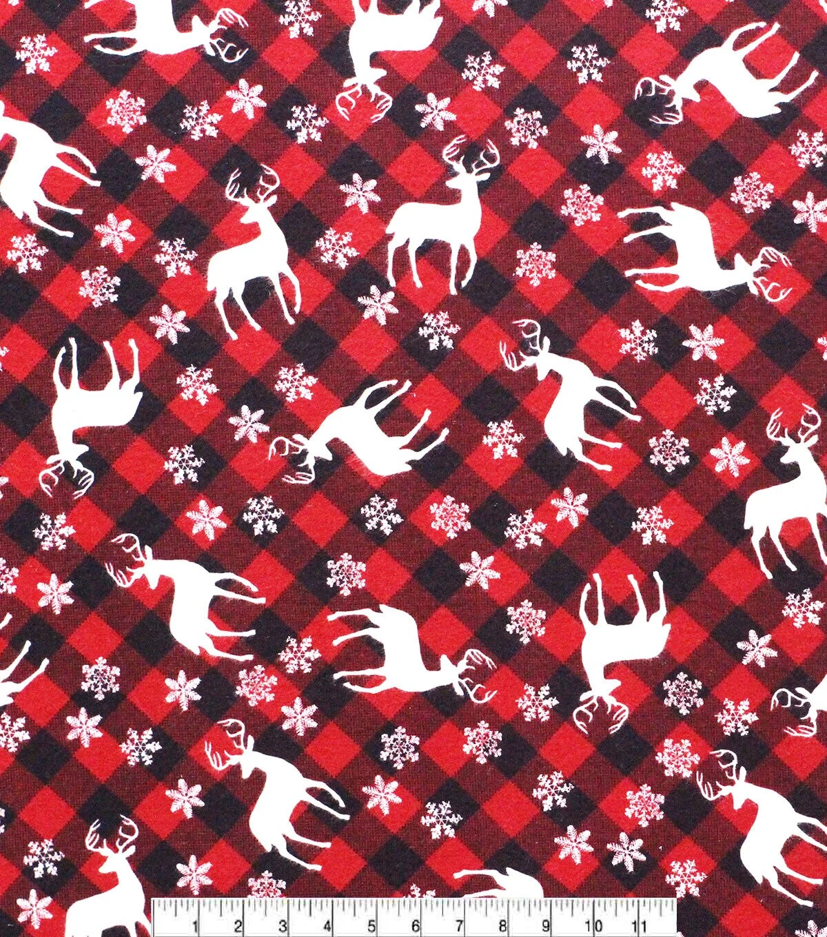 Deer & Snowflakes on Plaid Super Snuggle Christmas Flannel Fabric