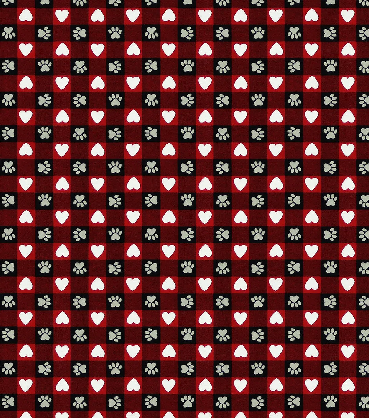 Paws And Hearts Red Buffalo Check Super Snuggle Flannel Fabric