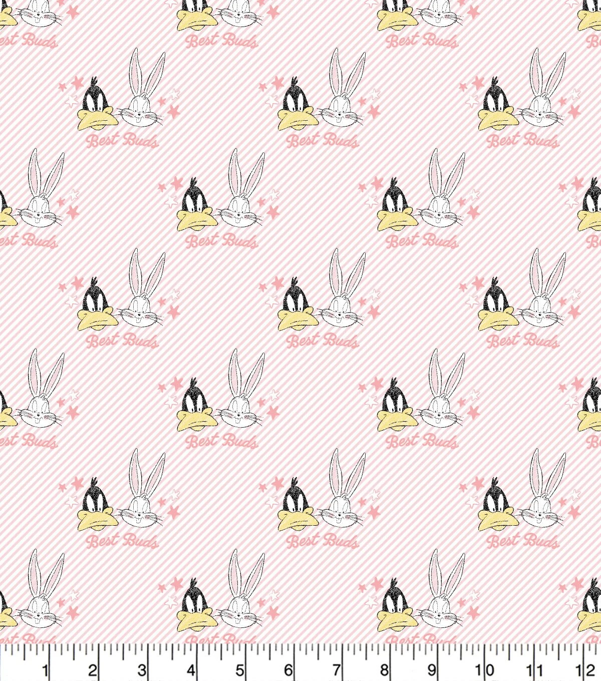 Looney Tunes Bugs Daffy Pink Flannel Fabric
