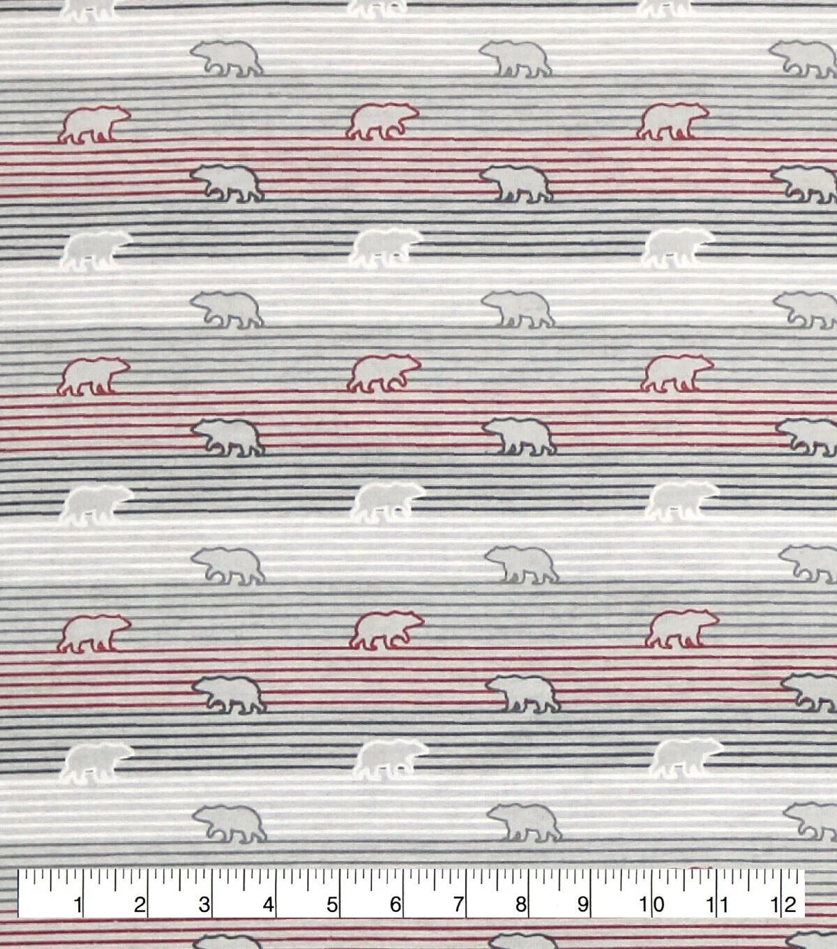 Bear Silhouttes On Stripes Super Snuggle Flannel Fabric