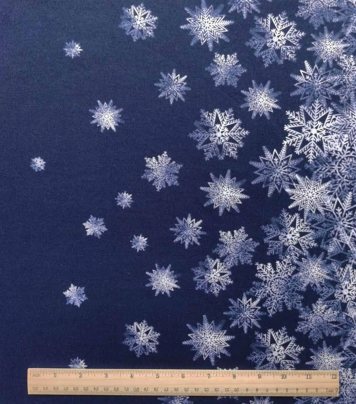 Blue Gradient Snowflakes Christmas Luxe Flannel Fabric