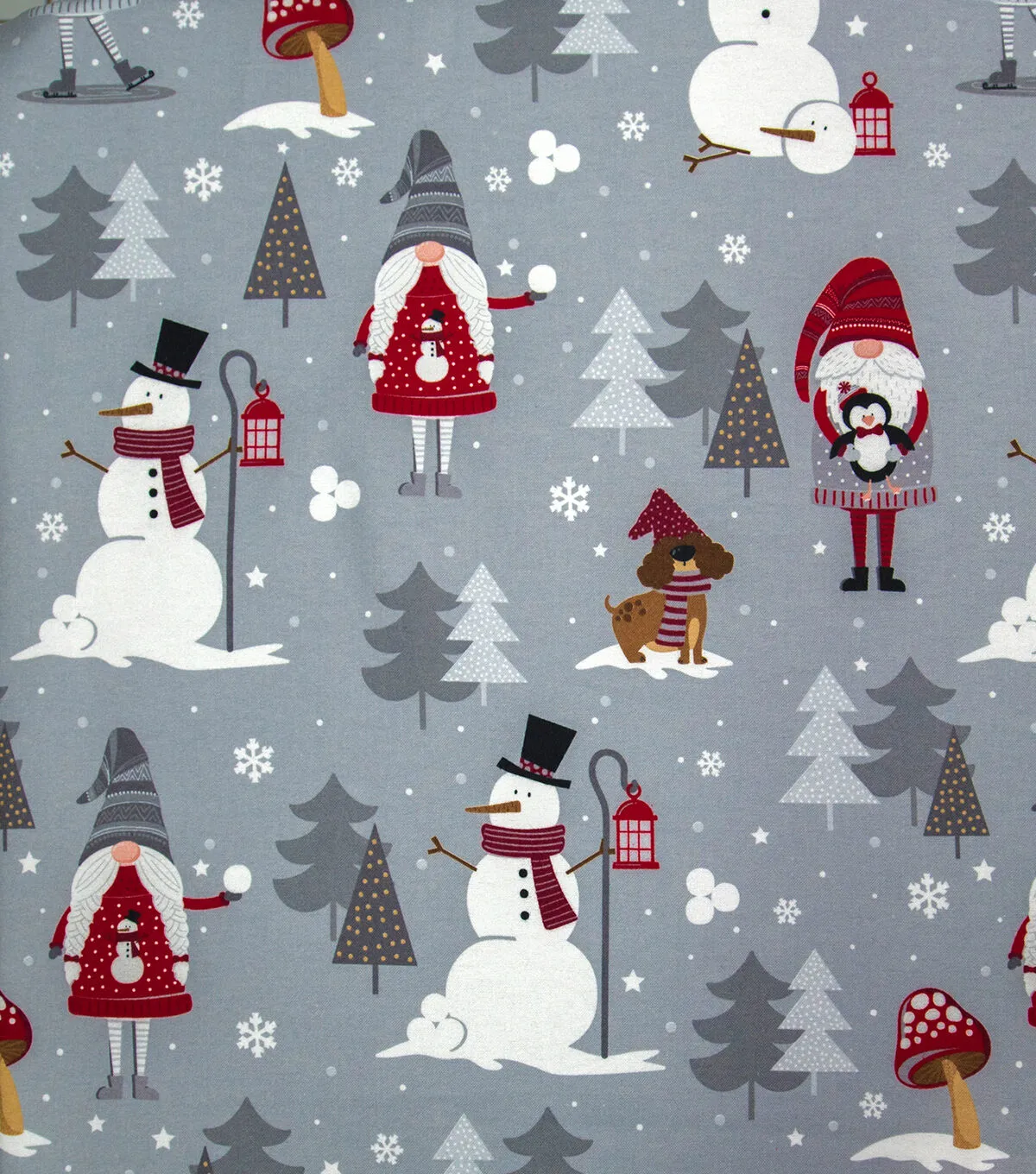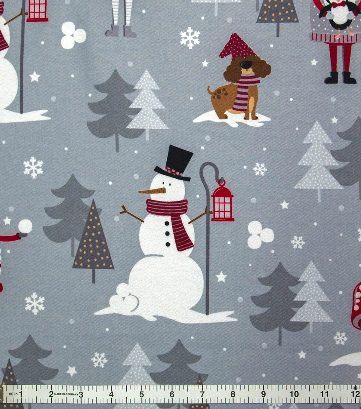 Snowmen & Trees on Gray Super Snuggle Christmas Flannel Fabric
