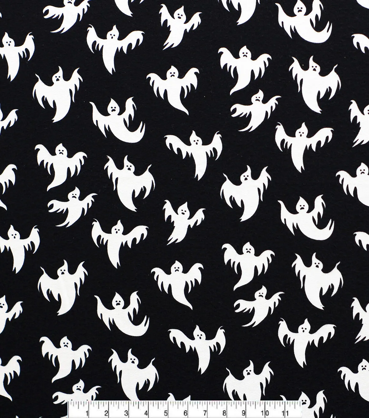 Ghosts On Black Glow in The Dark Super Snuggle Flannel Fabric