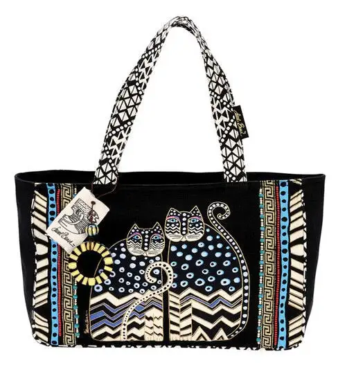 Laurel Burch Medium Tote with Zipper Top Spotted Cats