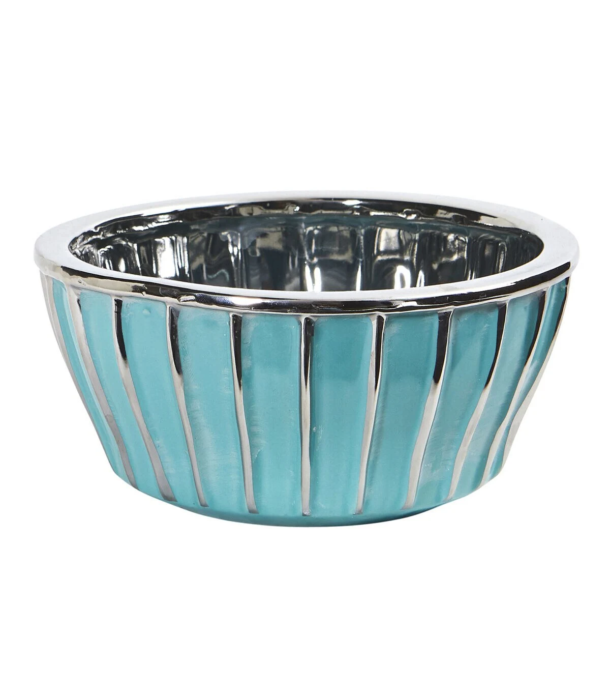 Nearly Natural 7 Teal Vase With Silver Burnishing
