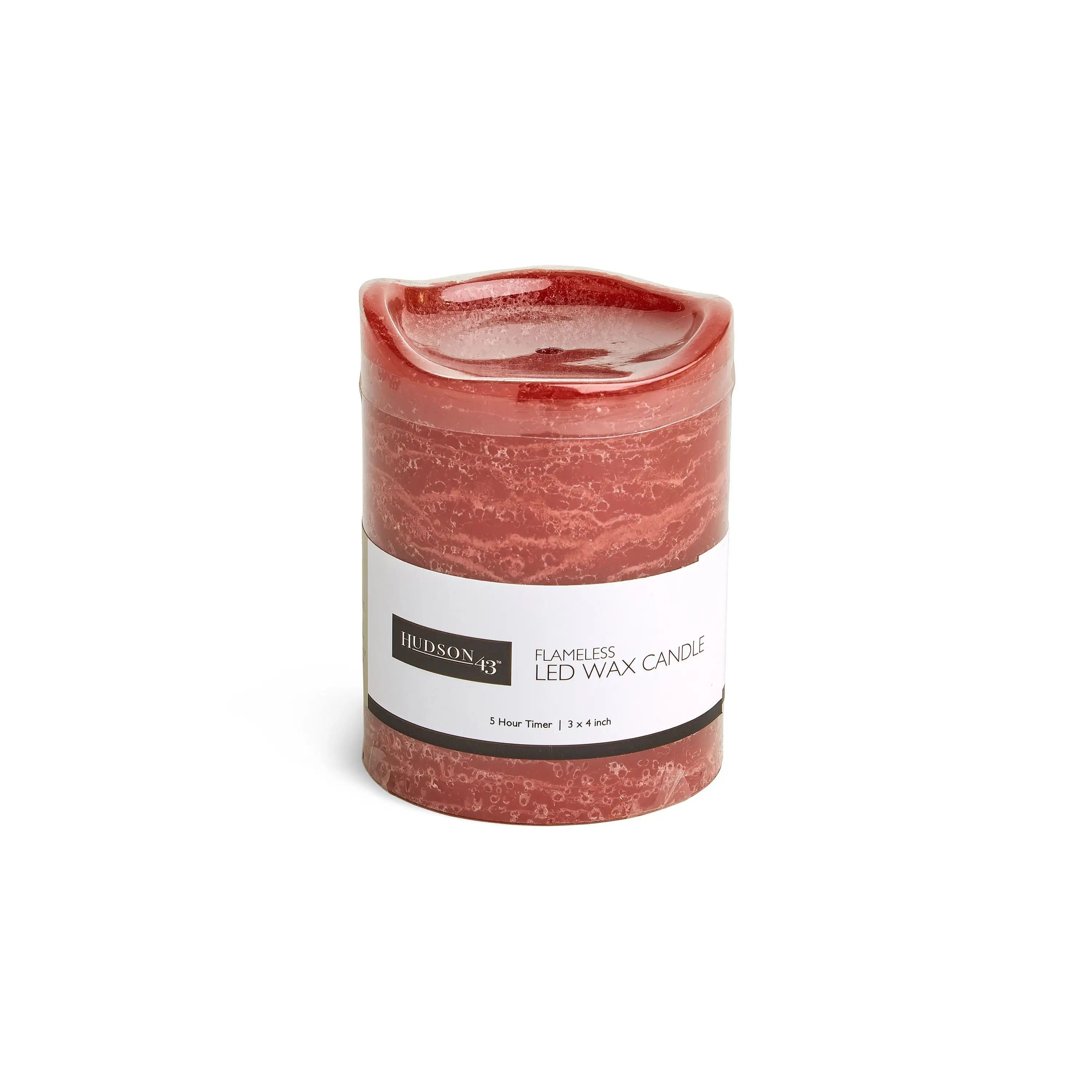 Flameless Pomegranate Scented LED Rustic Pillar Candle 3''x4'' Currant