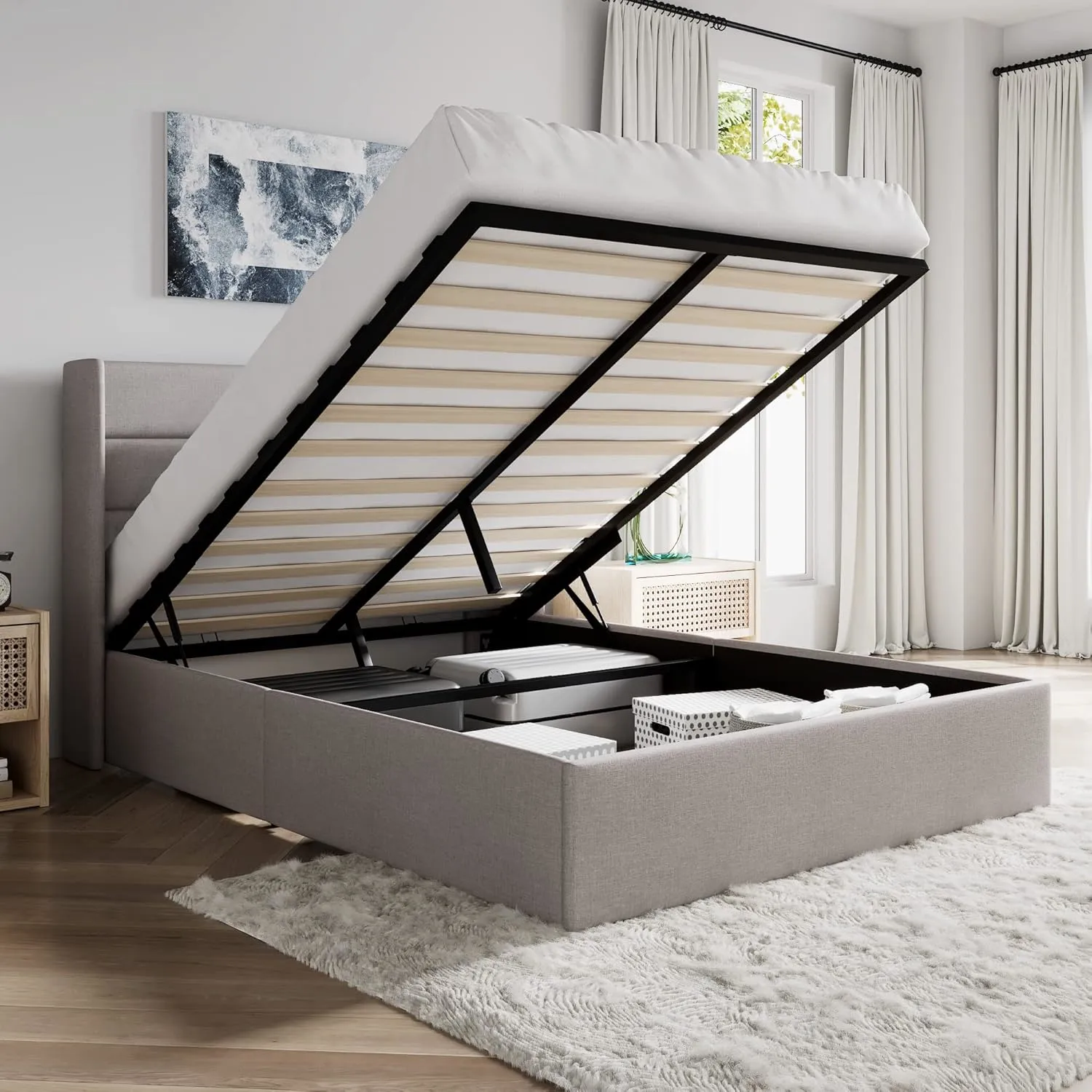 SHA CERLIN Lift Up Storage Bed/Modern Wingback Headboard