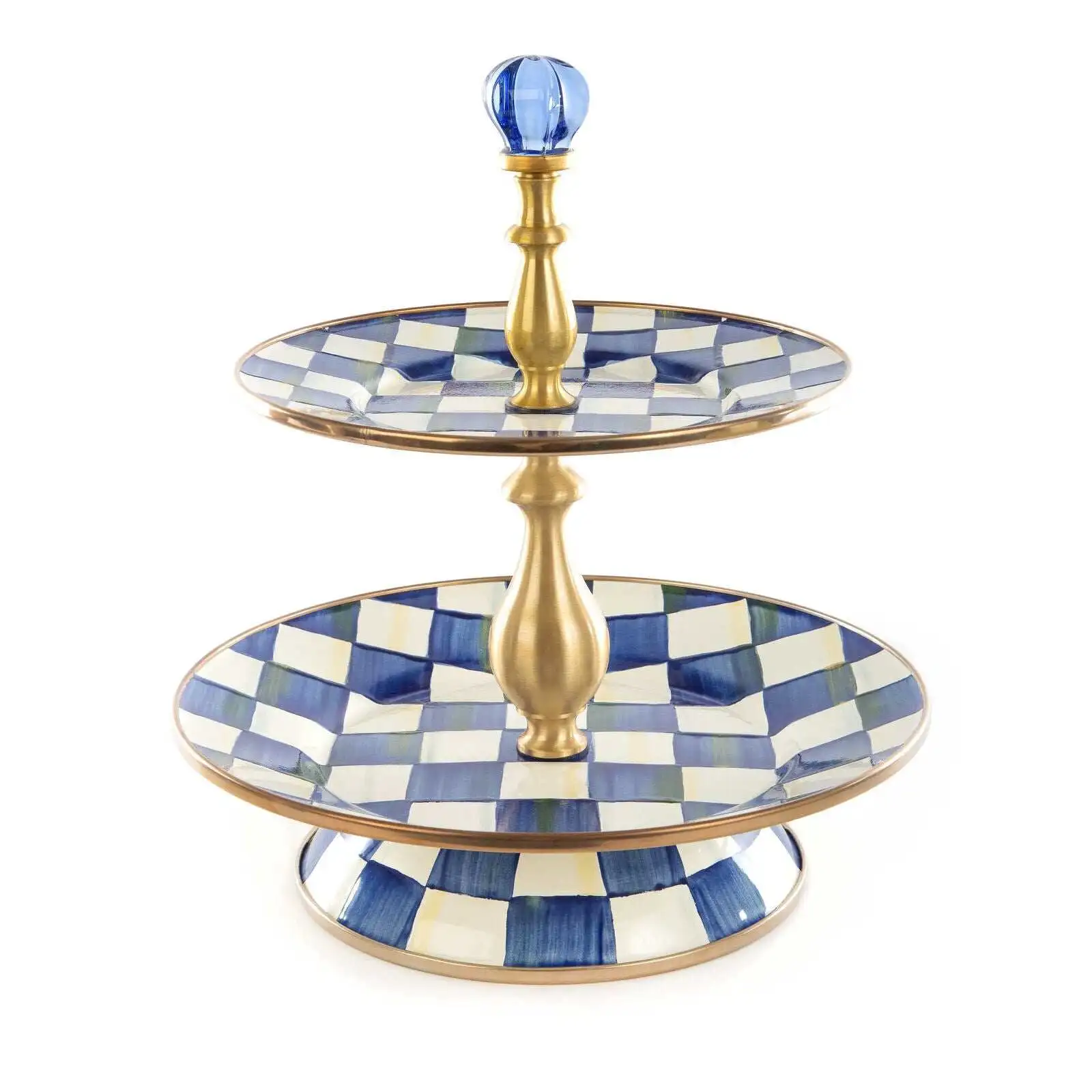 Royal Check Luxury Blue Enamel Two Tier Sweet Stand
