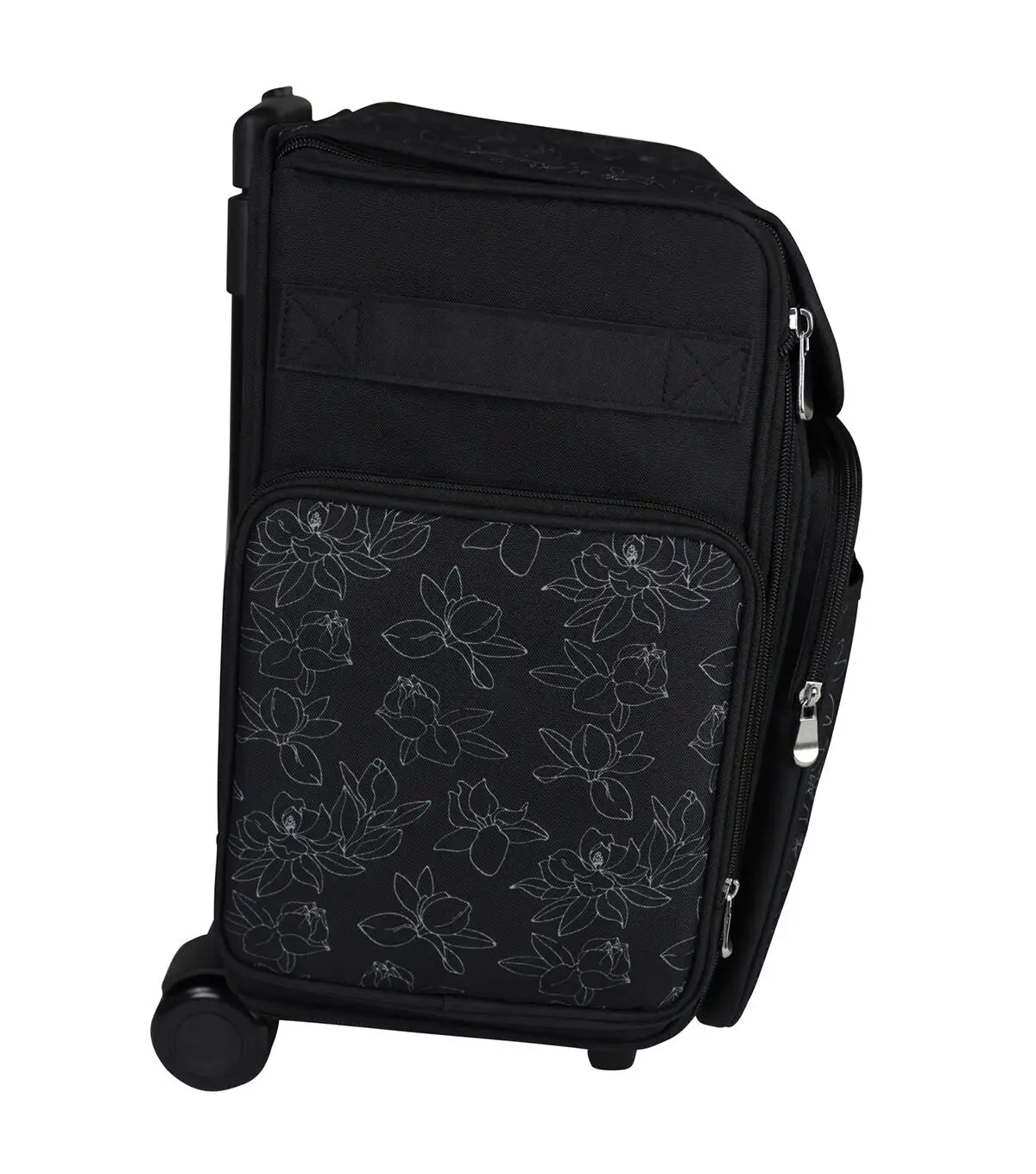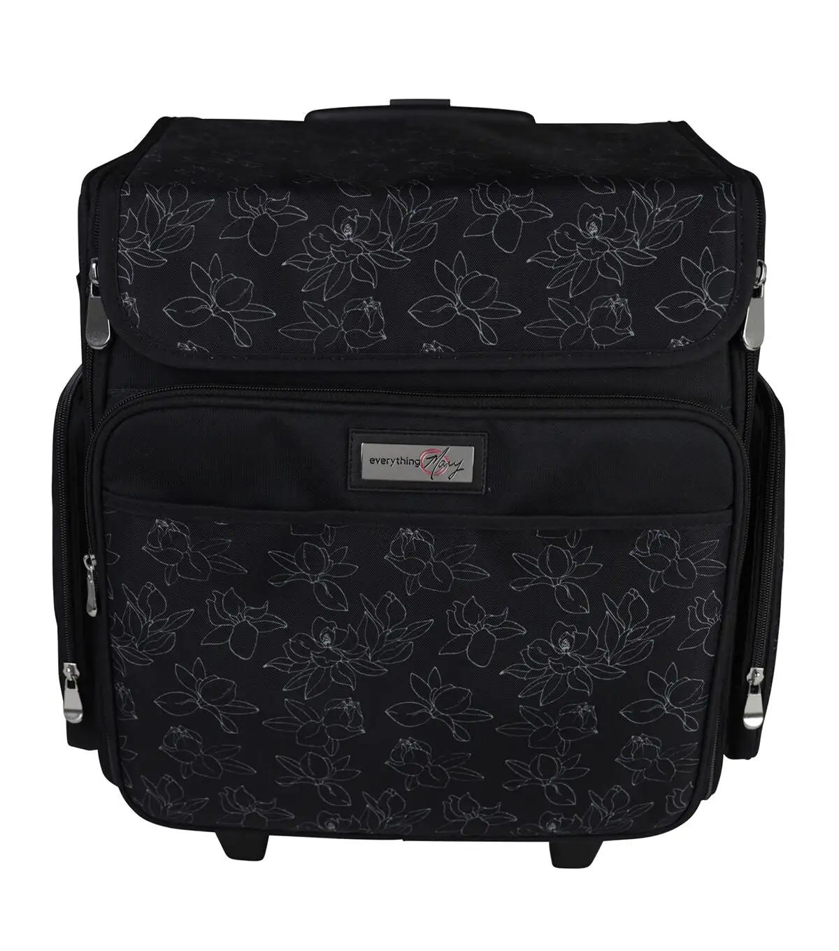 Everything Mary 19 White Floral on Black Collapsible Rolling Craft Bag