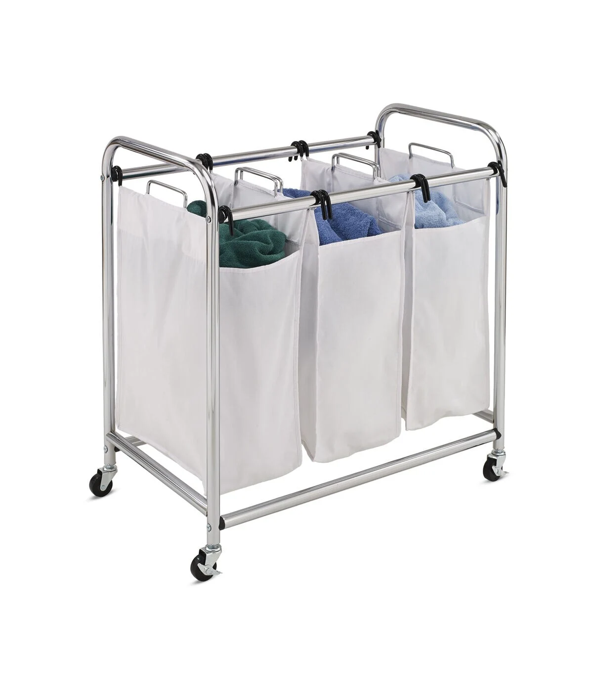 Honey Can Do 31 x 32 Chrome & White Rolling Triple Laundry Sorter