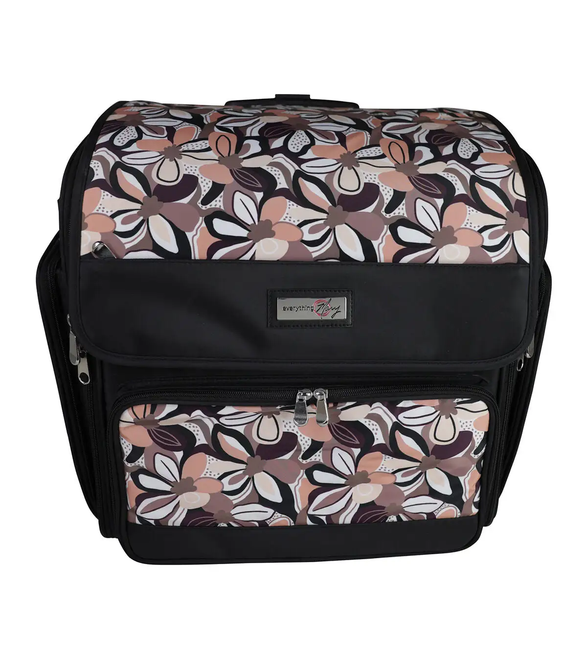Everything Mary 18 Brown Floral Collapsible Rolling Craft Bag