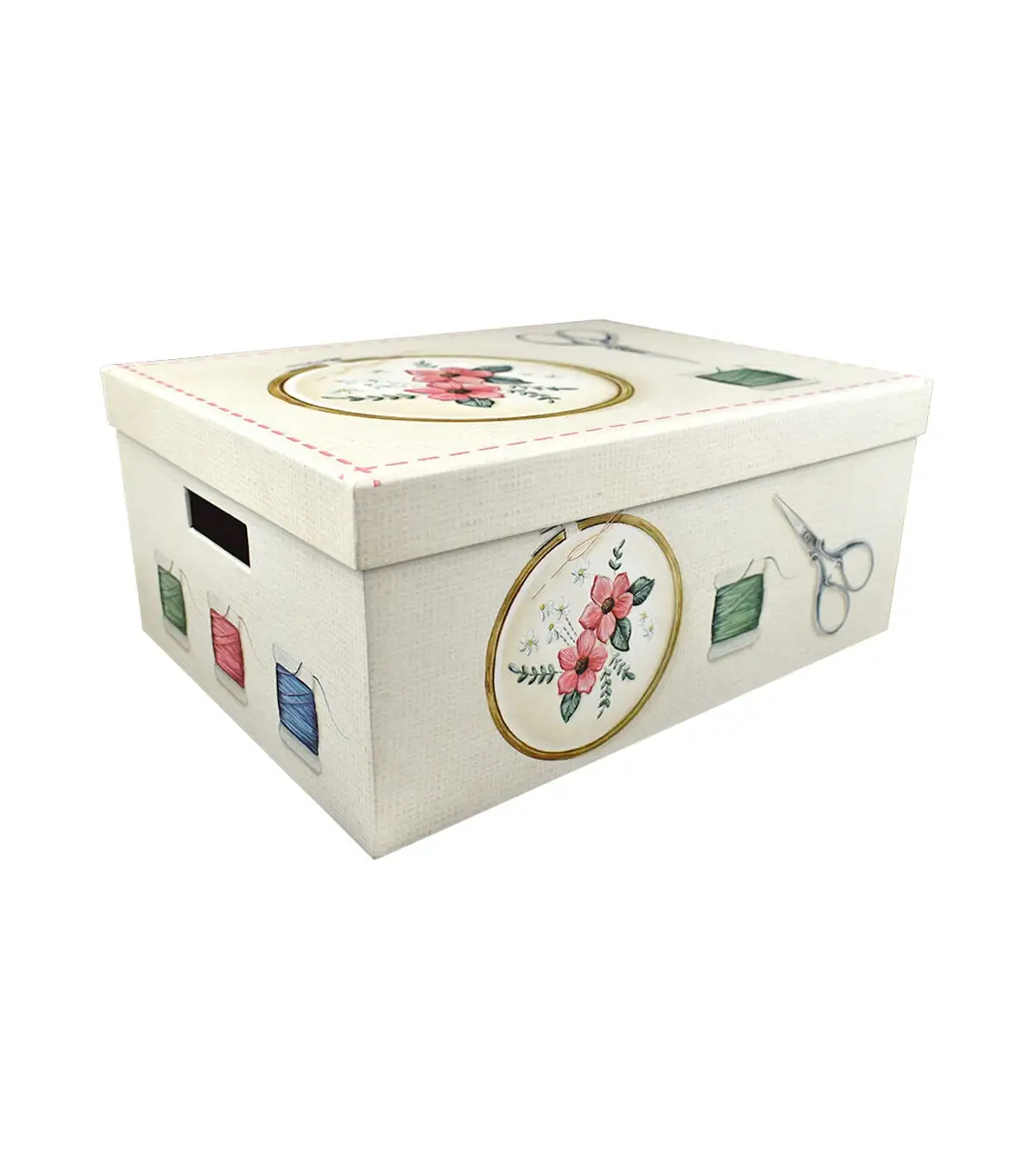 15 Sewing Notions Rectangle Box With Lid & Cutout Handles by Hudson 43