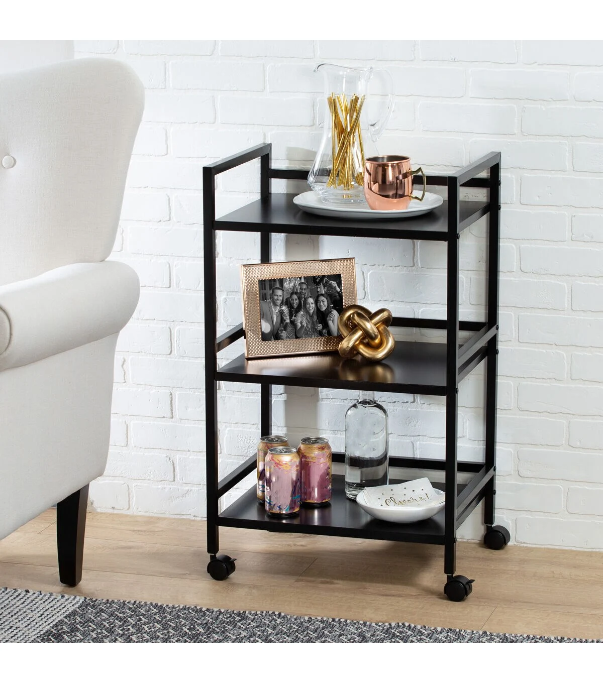 Honey Can Do 28 x 34.5 Black Folding 3 Tier Metal Rolling Shelf