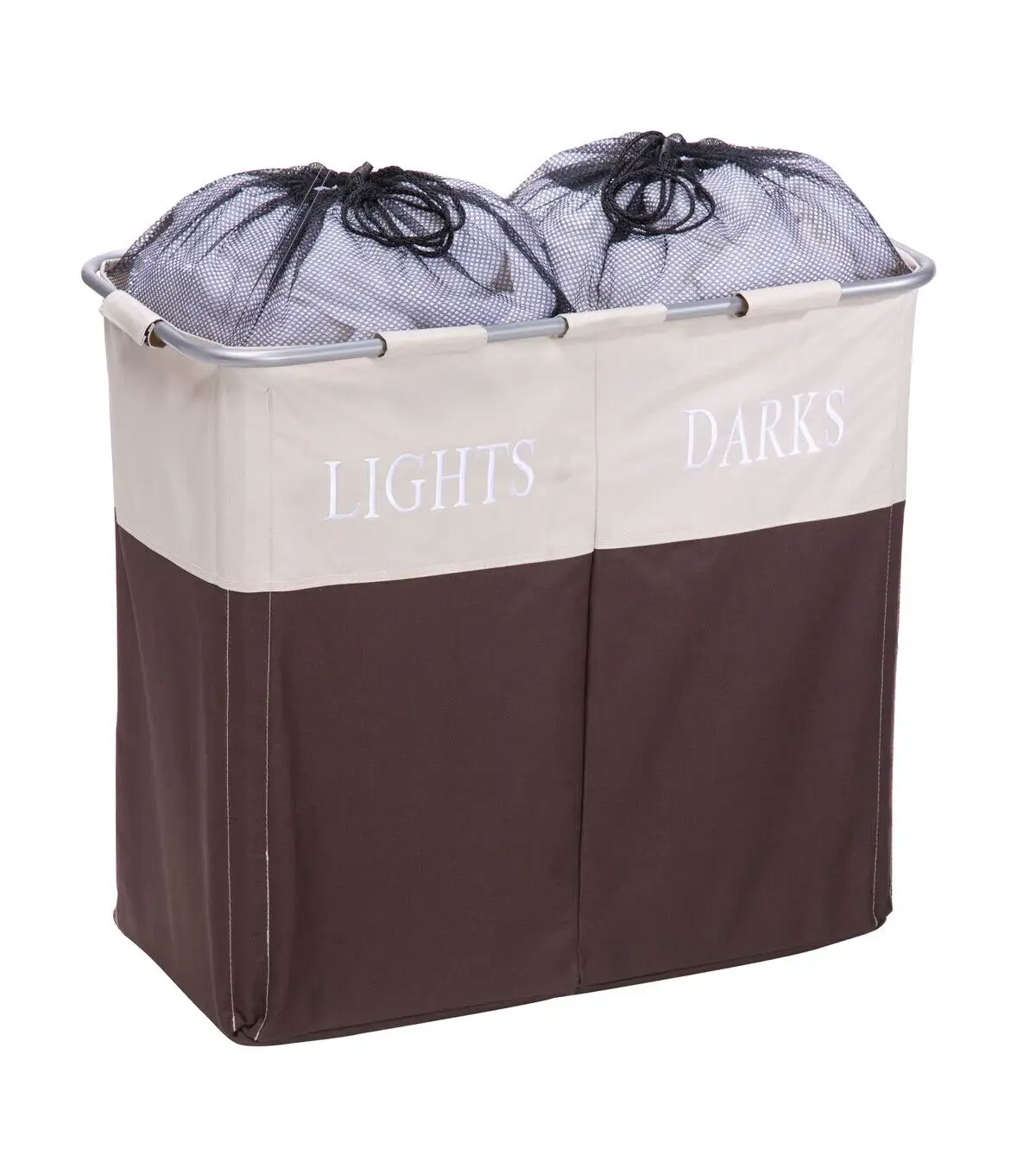 Honey Can Do 25 x 21.5 Brown & Taupe Dual Compartment Laundry Hamper