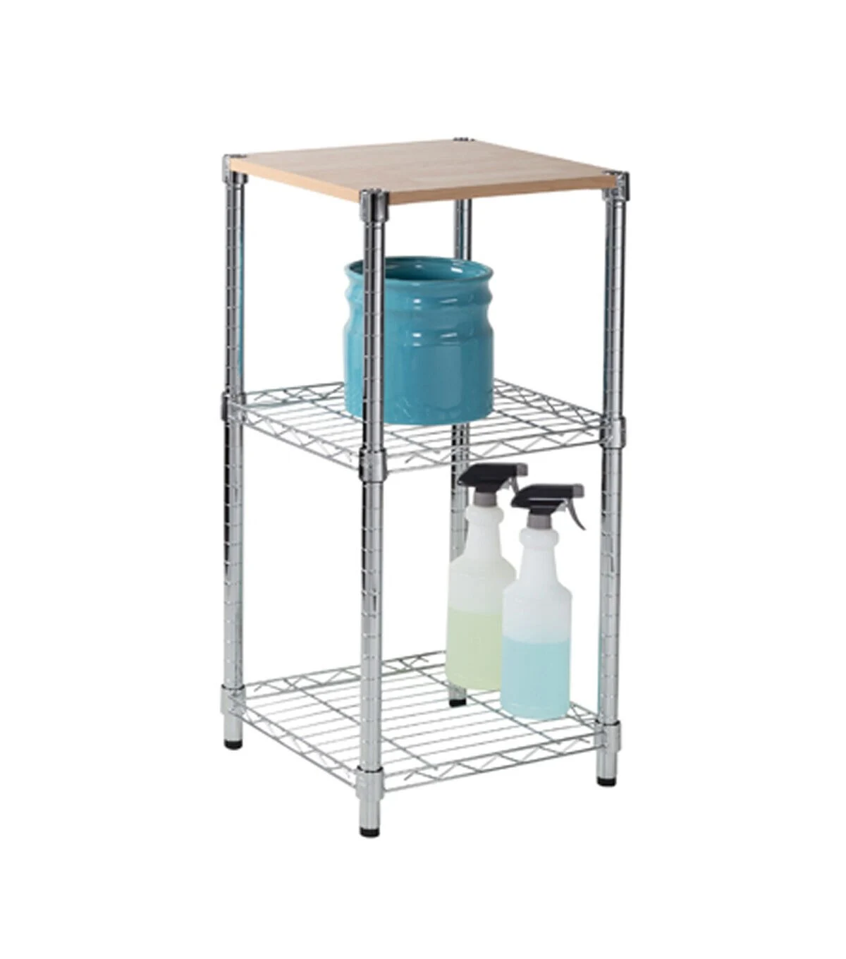 Honey Can Do 30 Chrome Wood 3 Tier Adjustable Shelving Unit