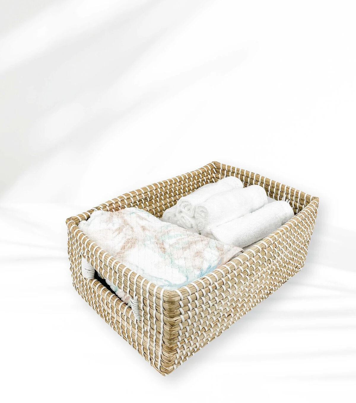 16 Seagrass Woven Basket With Cutout Handle by Place & Time