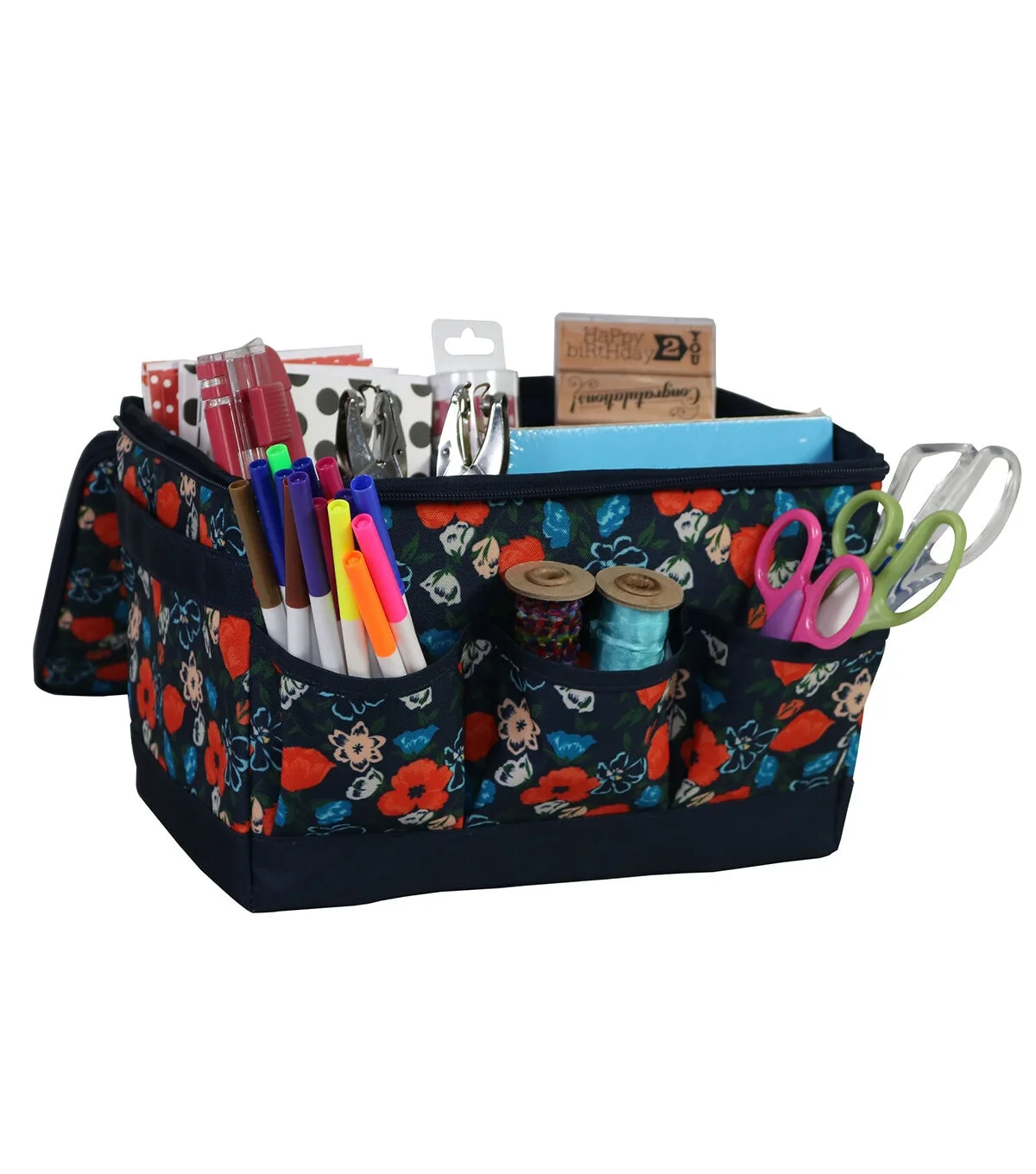 Everything Mary 8.5 x 8 Floral on Navy Craft Organizer With Lid