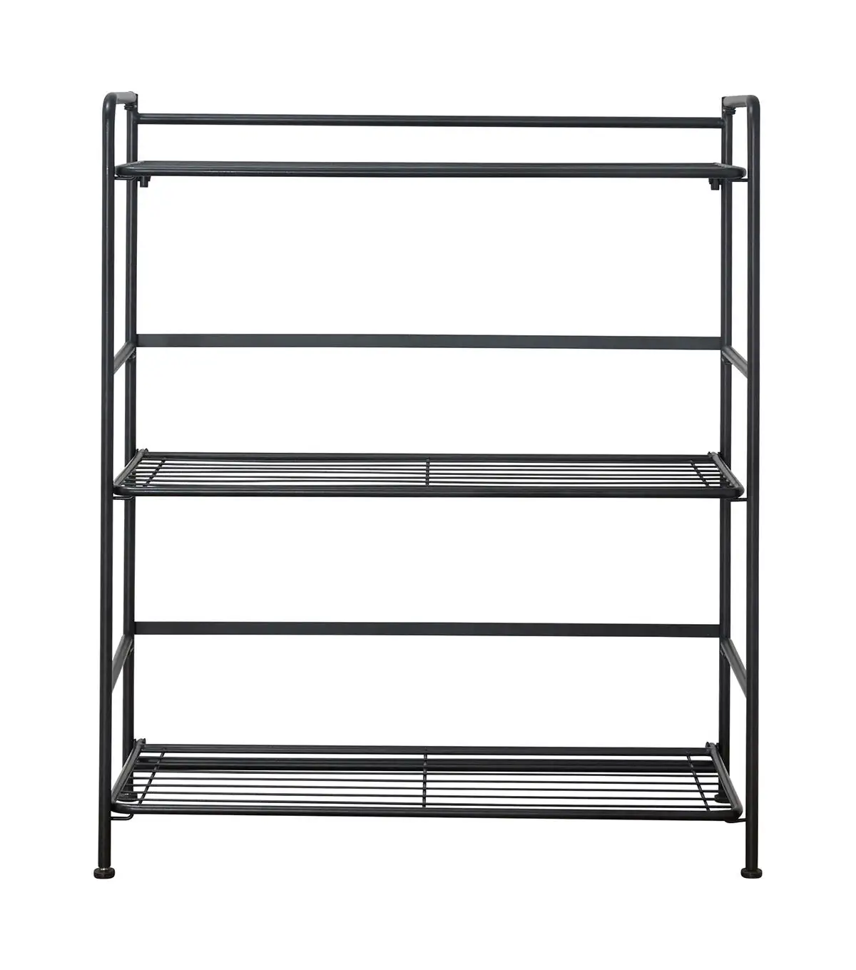 FlipShelf Black 3 Tier Metal Wide Shelving Unit