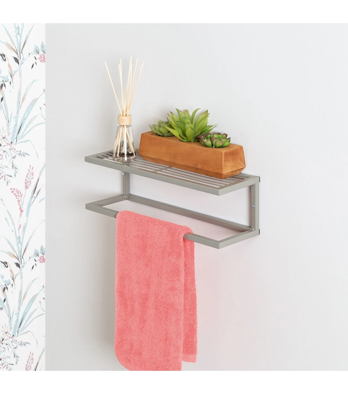 Honey Can Do 16 x 5 Satin Nickel Slatted Bath Shelf With Towel Bar
