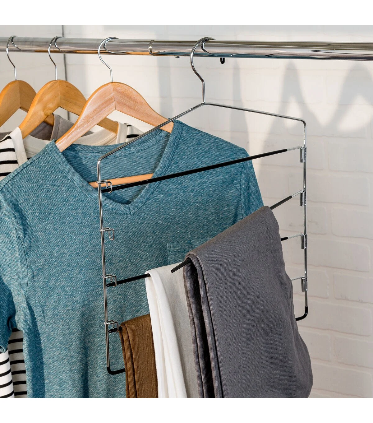 Honey Can Do 15 x 12 Chrome 5 Tier Swing Arm Pant Hangers 2pk