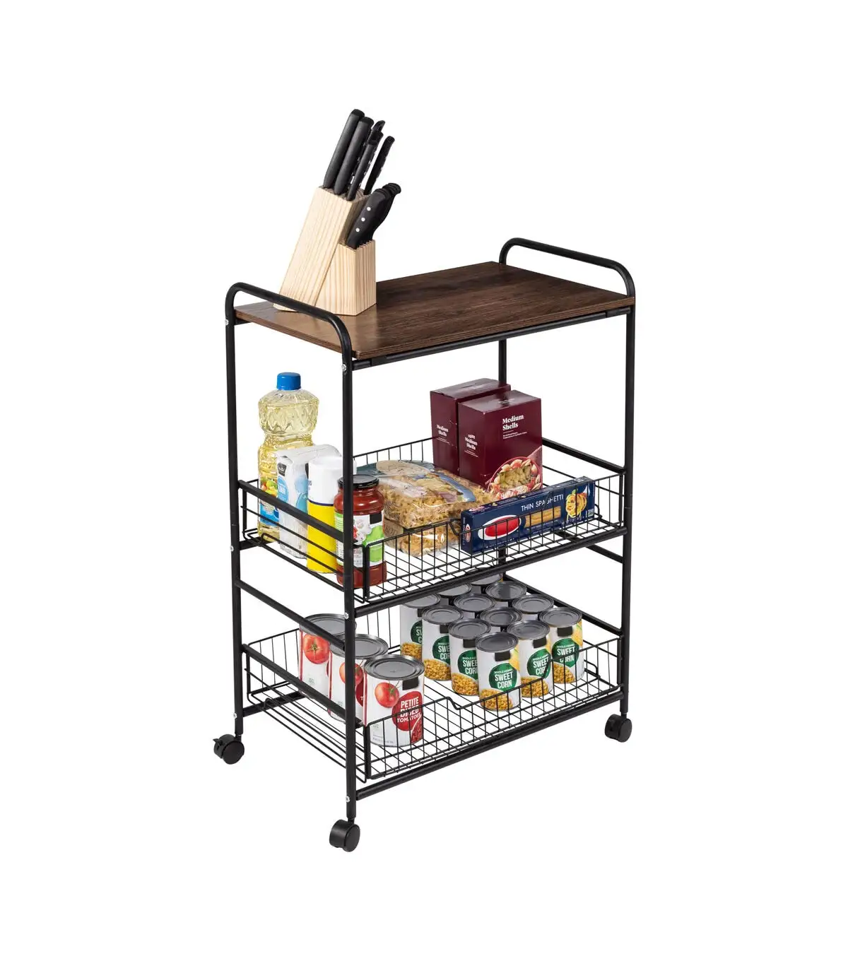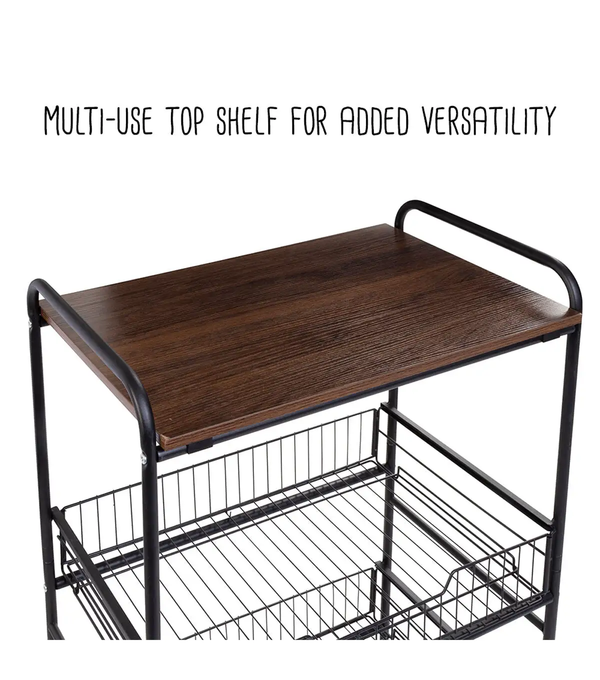 Honey Can Do 34 Black & Walnut 3 Tier Cart With Wood Shelf & Baskets