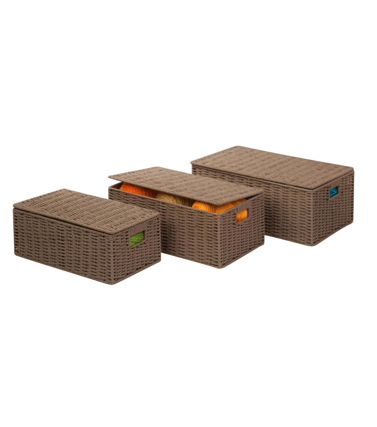 Honey Can Do 17 x 11.5 Paper Rope Cord Baskets With Lids 3ct
