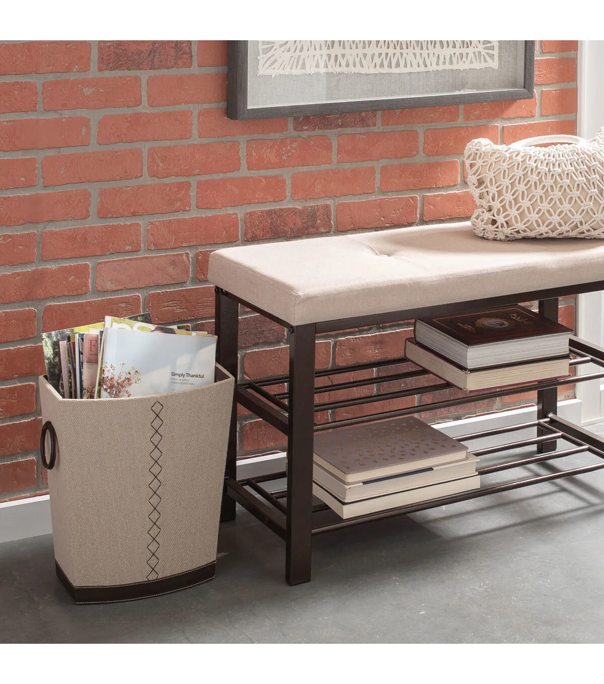 Simplify 17 Faux Jute Grommet Storage Bin With Handles
