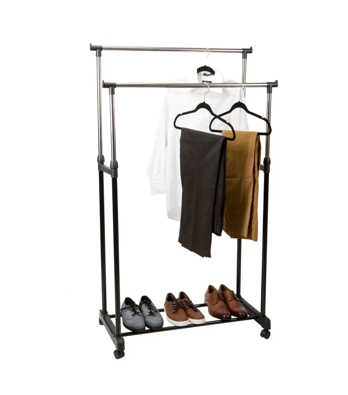 Simplify 31.5 Black 2 Tier Adjustable Height Rolling Garment Rack