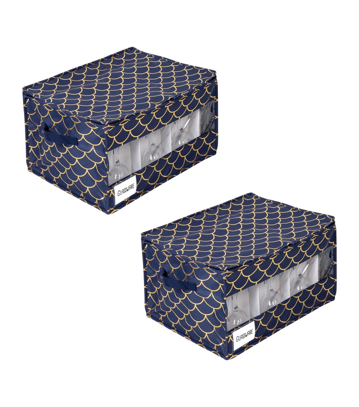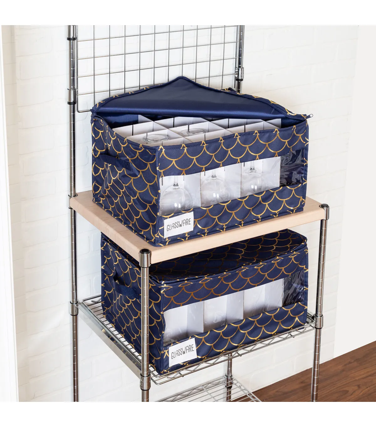 Honey Can Do 18.5 Gold Scallop on Navy Stemware Storage Boxes 2pk