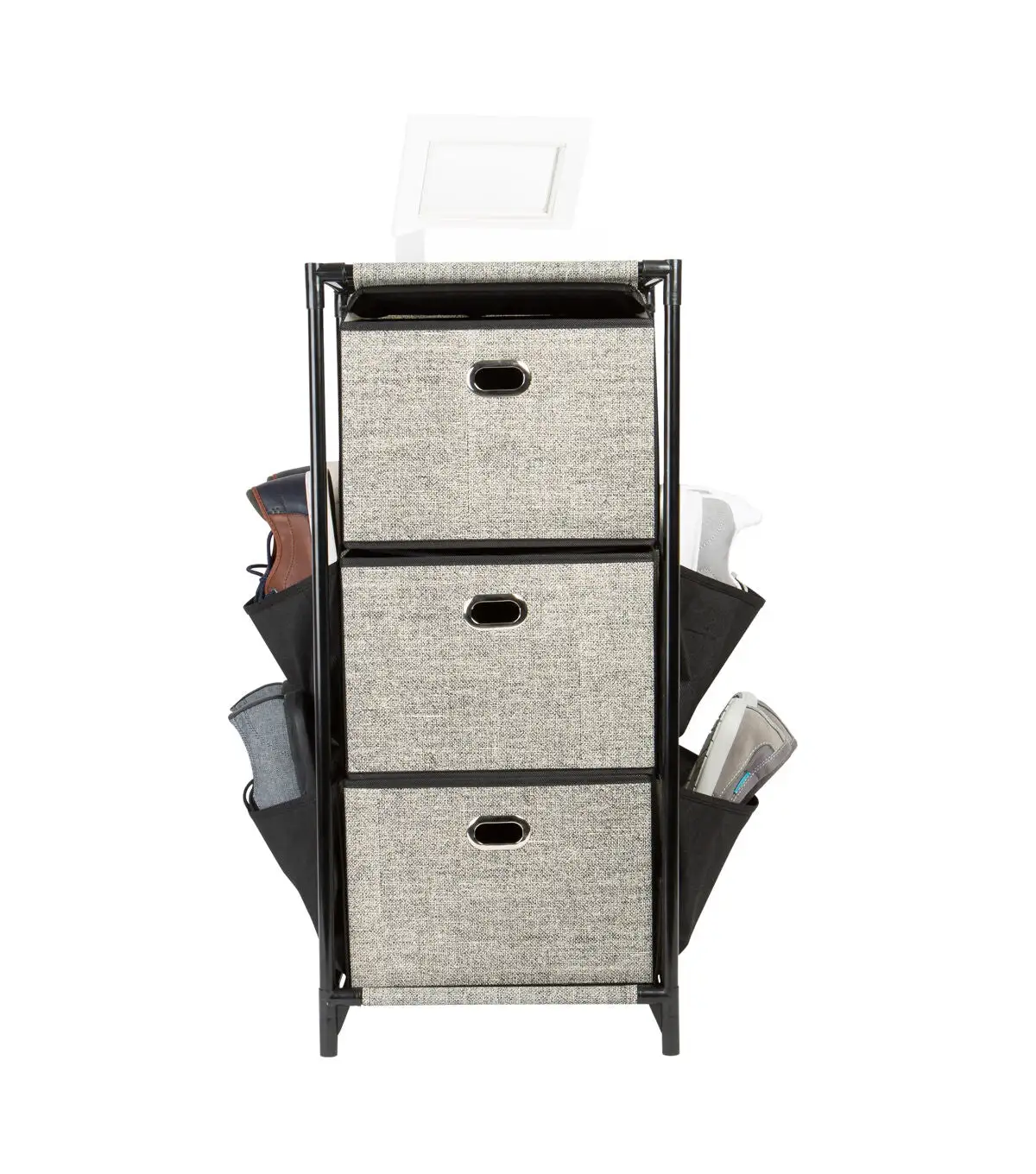 Simplify 30 Gray 3 Tier Storage Drawers With Black Side Pockets