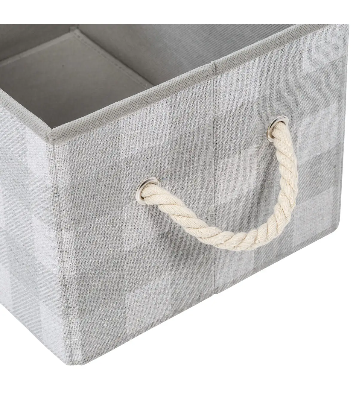 Honey Can Do 14.5 Gray Plaid Fabric Storage Bins With Handles 3pk