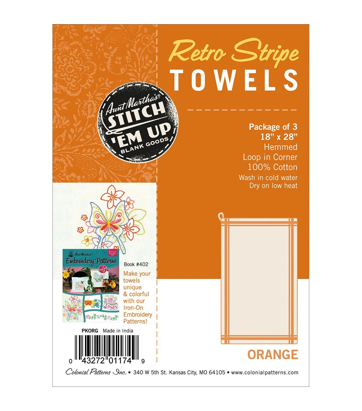 Stitch 'Em Up 18 x 28 Orange Stripe Dish Towel Cross Stitch Fabric 2pk