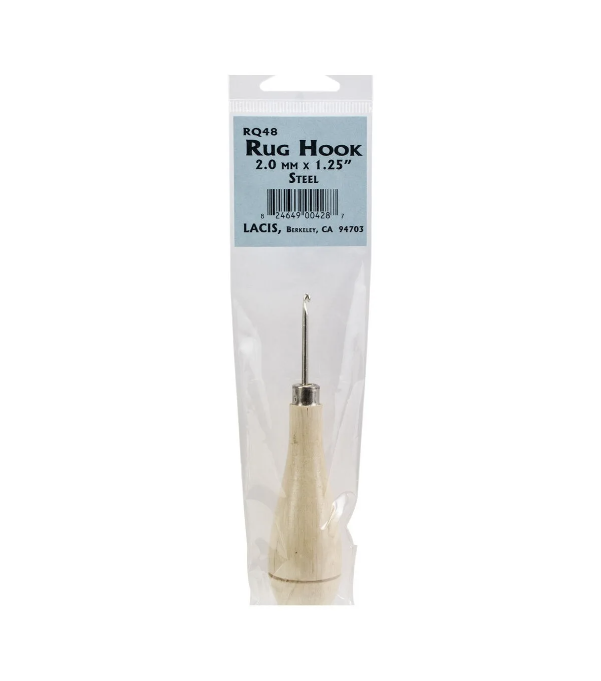 Lacis 2mmx1.25'' Steel Primitive Rug Hook with Wood Handle