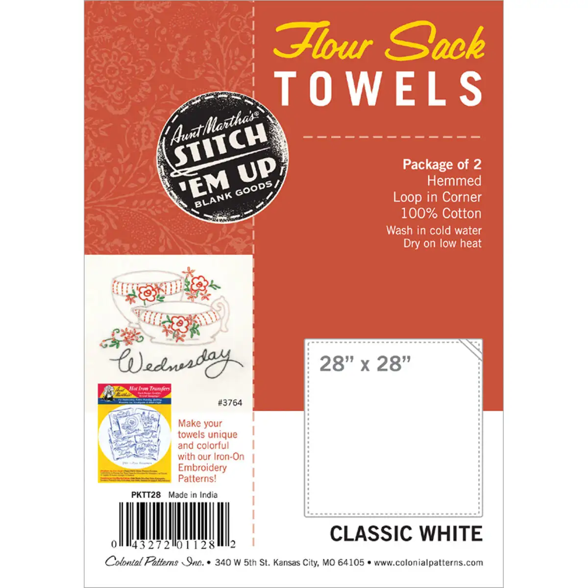 Stitch 'Em Up 28 x 28 Flour Sack Towel Embroidery Fabric 2pk