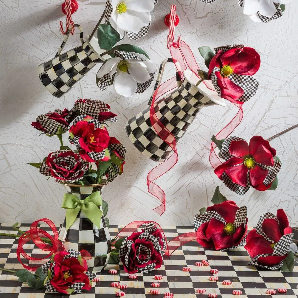 For lemonade, iced tea��or better yet, a blend of both��nothing beats our Courtly Check? Medium Practical Pitcher. The hand-painted black and white checks are woven with jewel tones for a refreshing way to integrate everyone��s favorite pattern into the everyday.