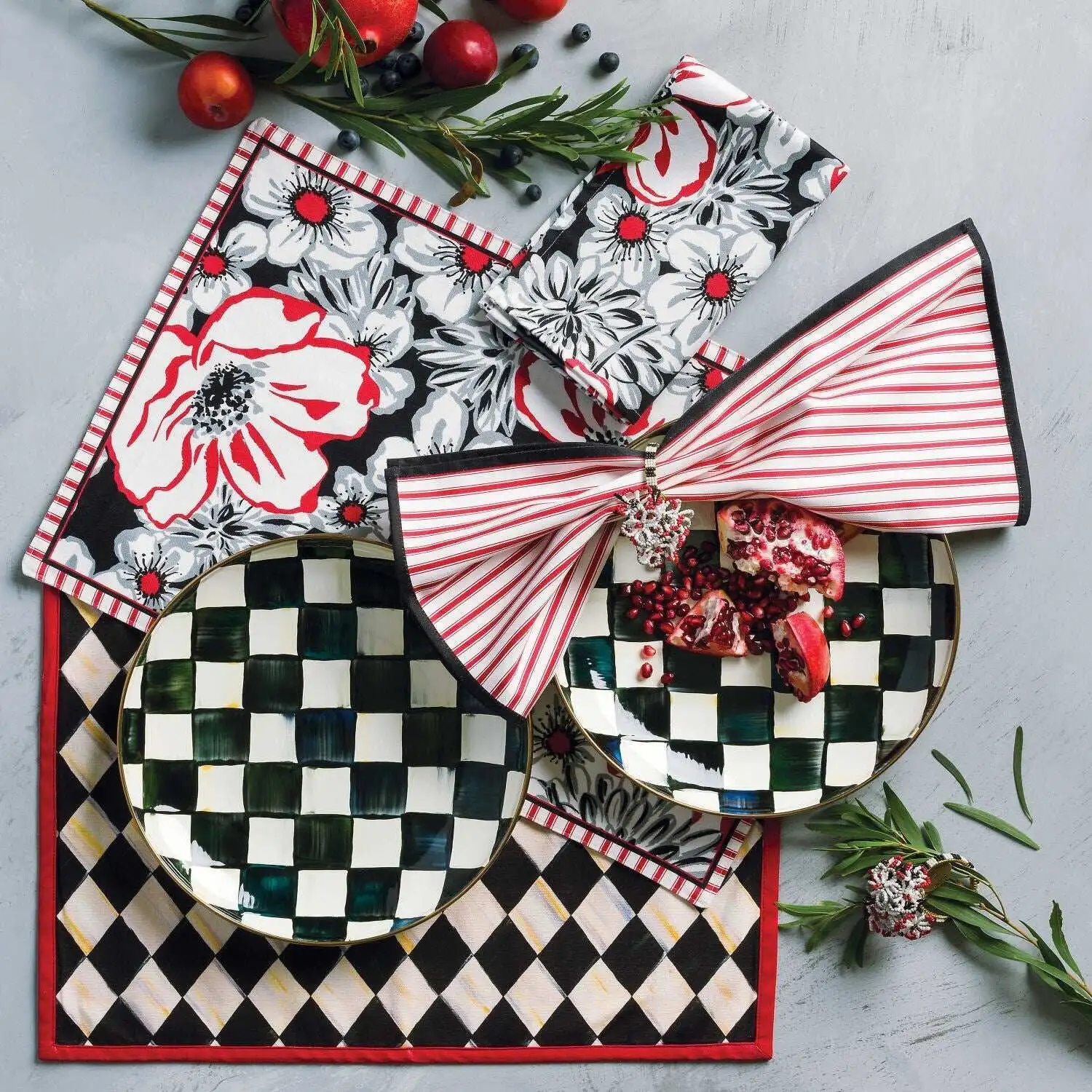 Heavy-gauge, hand-glazed steel underbody with hand-painted Courtly Checks, rimmed in bronzed stainless steel. Pieces may vary due to the handmade nature of each product.