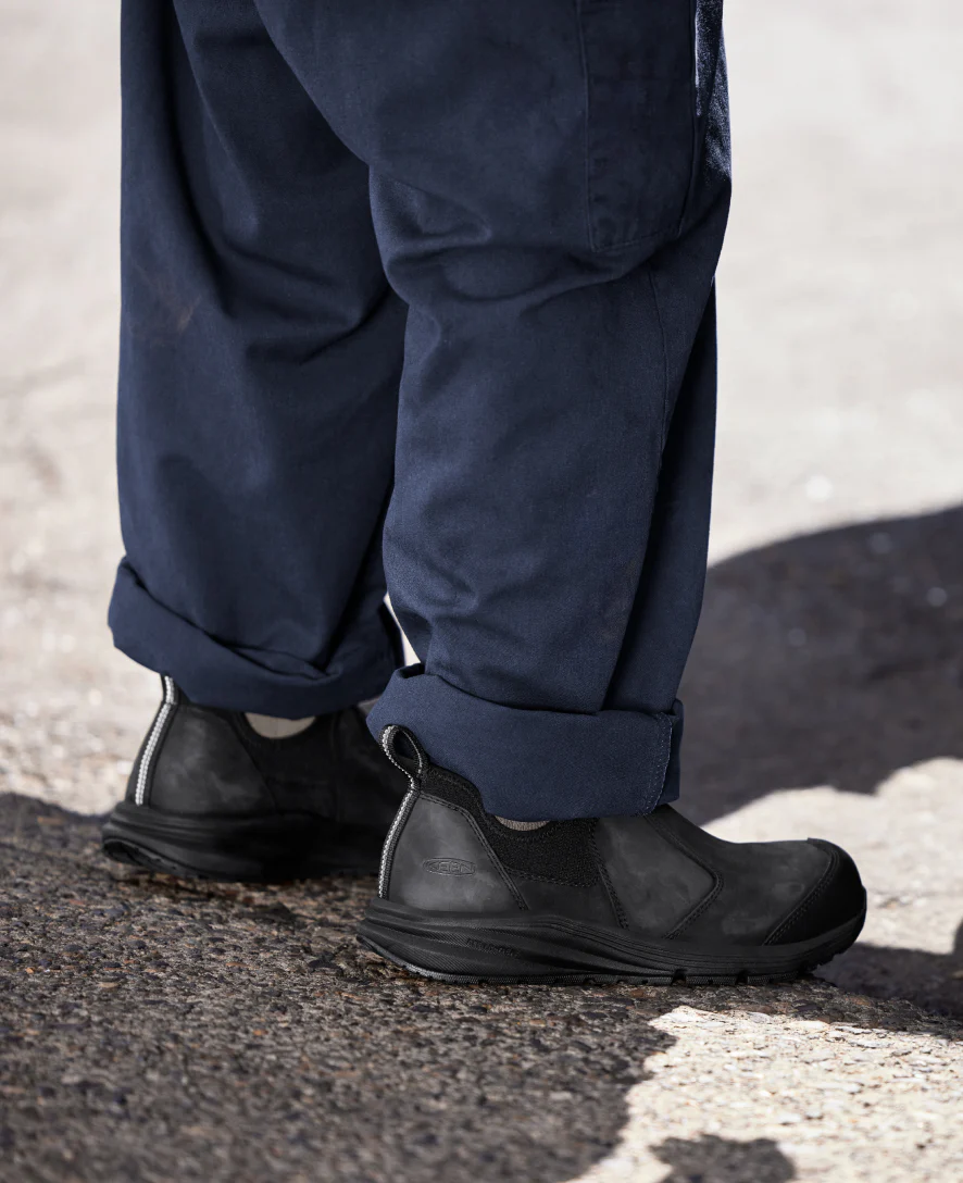 Designed with game-changing midsole cushioning, leather upper, and ESD outsole, this slip-on work sneaker adds protection for both you and your workpiece.