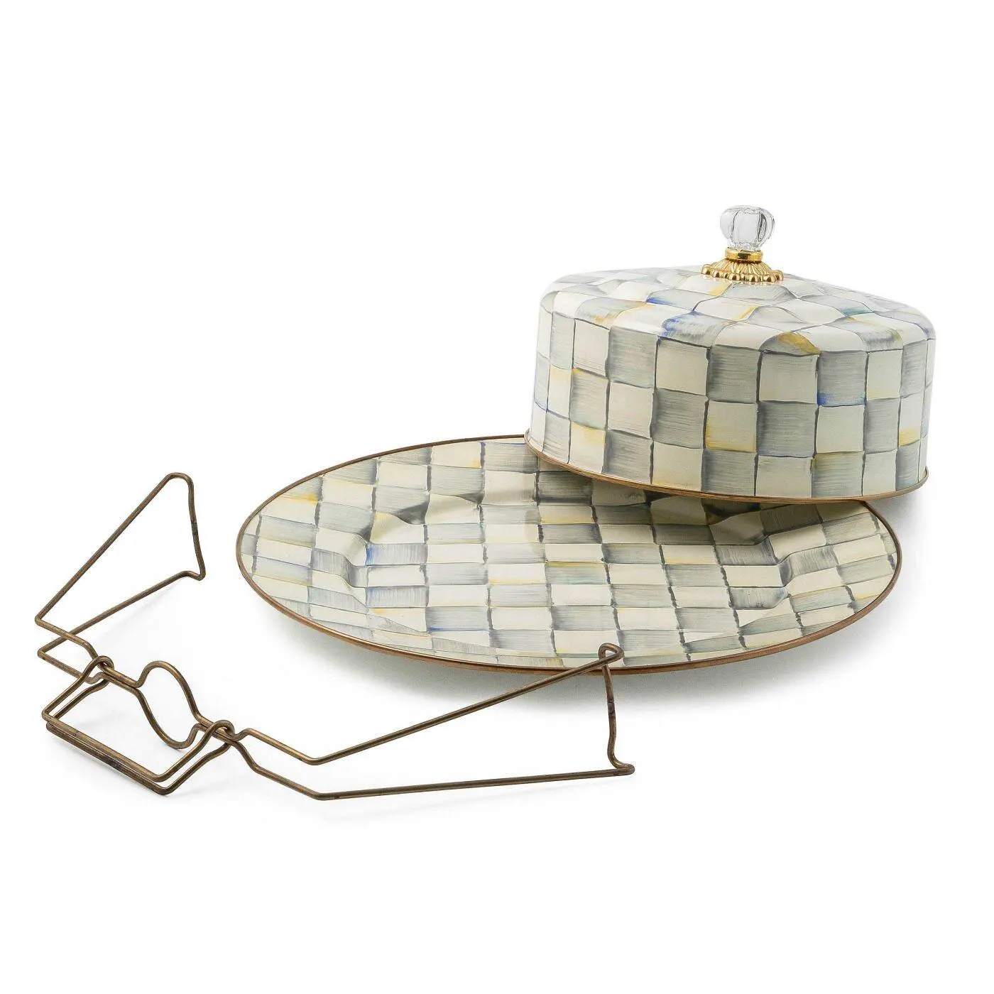 Draped top to bottom in color-dragged grey checks, the Sterling Check? Cake Carrier is sure to make an impressive entrance at your next potluck dinner.