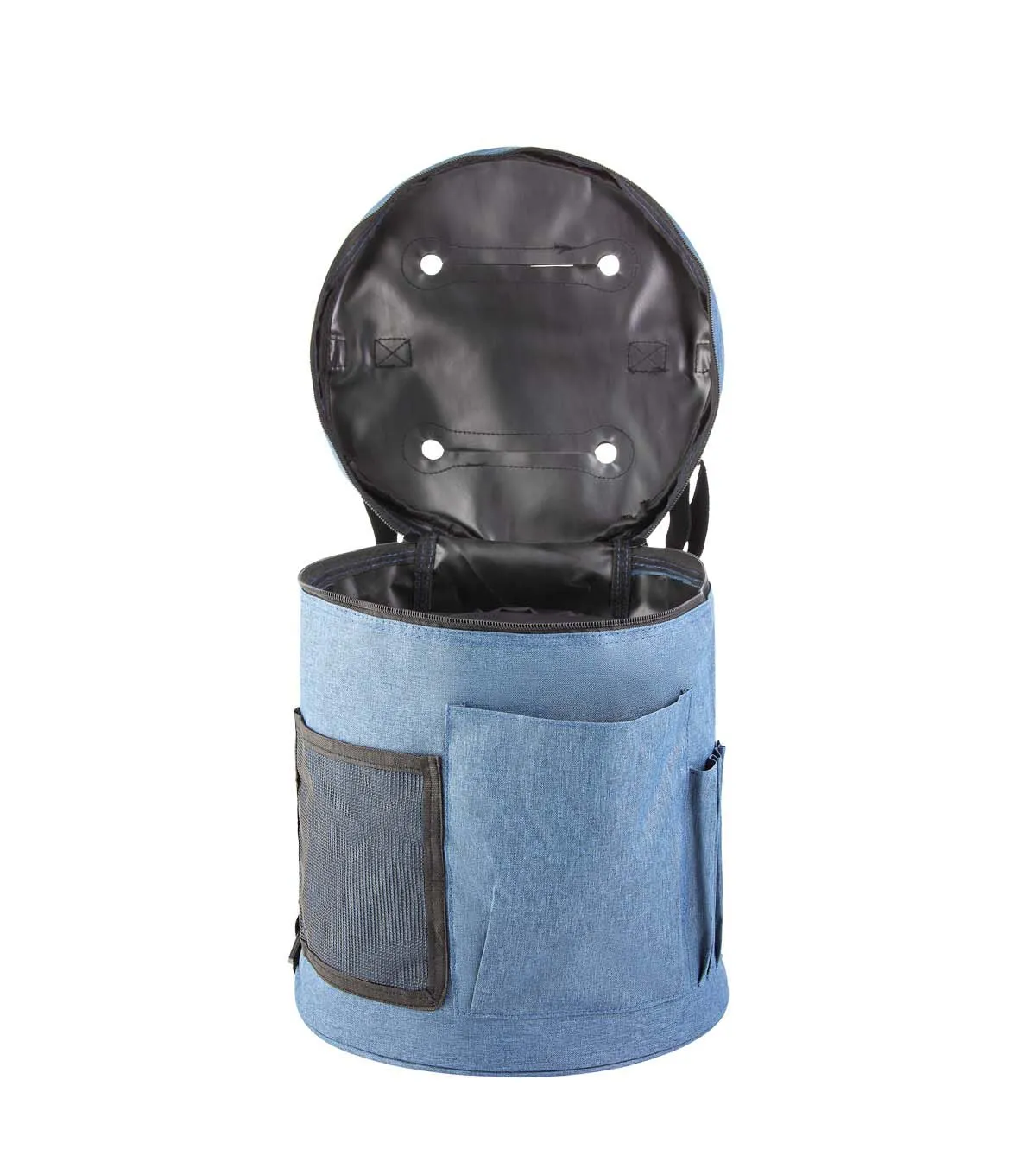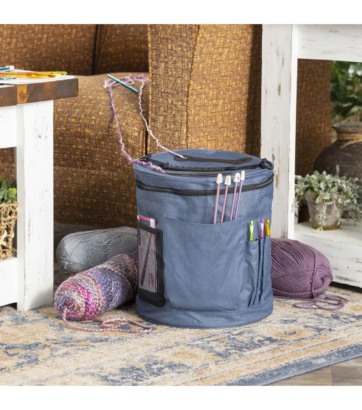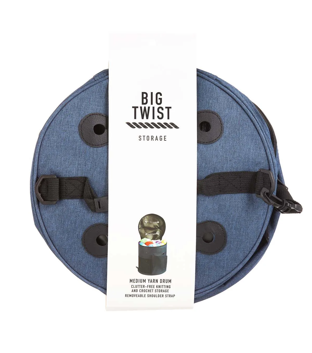 Keep your knitting supplies safe and organized with the Big Twist Medium Yarn Drum Storage Bag - Blue. It flaunts a soothing blue shade and is designed with pockets. You can use it to store yarns, knitting needles, crochet hooks and more. This drum-shaped storage bag will also make a great gift for a friend who is into knitting or needlework.