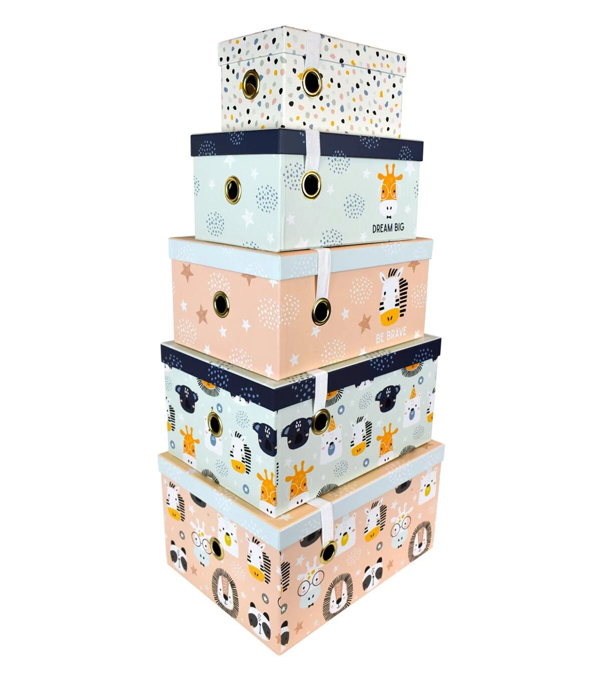 Present a lovely gift to your dear one in the Large Steamer Storage Box with Elastic Closure - Wild One. It sports a fun print of animal-themed images, stars and the words ‘Wild One.’ This lidded storage box is designed with an elastic closure. You can also use it to keep books, magazines, decor accents and more.