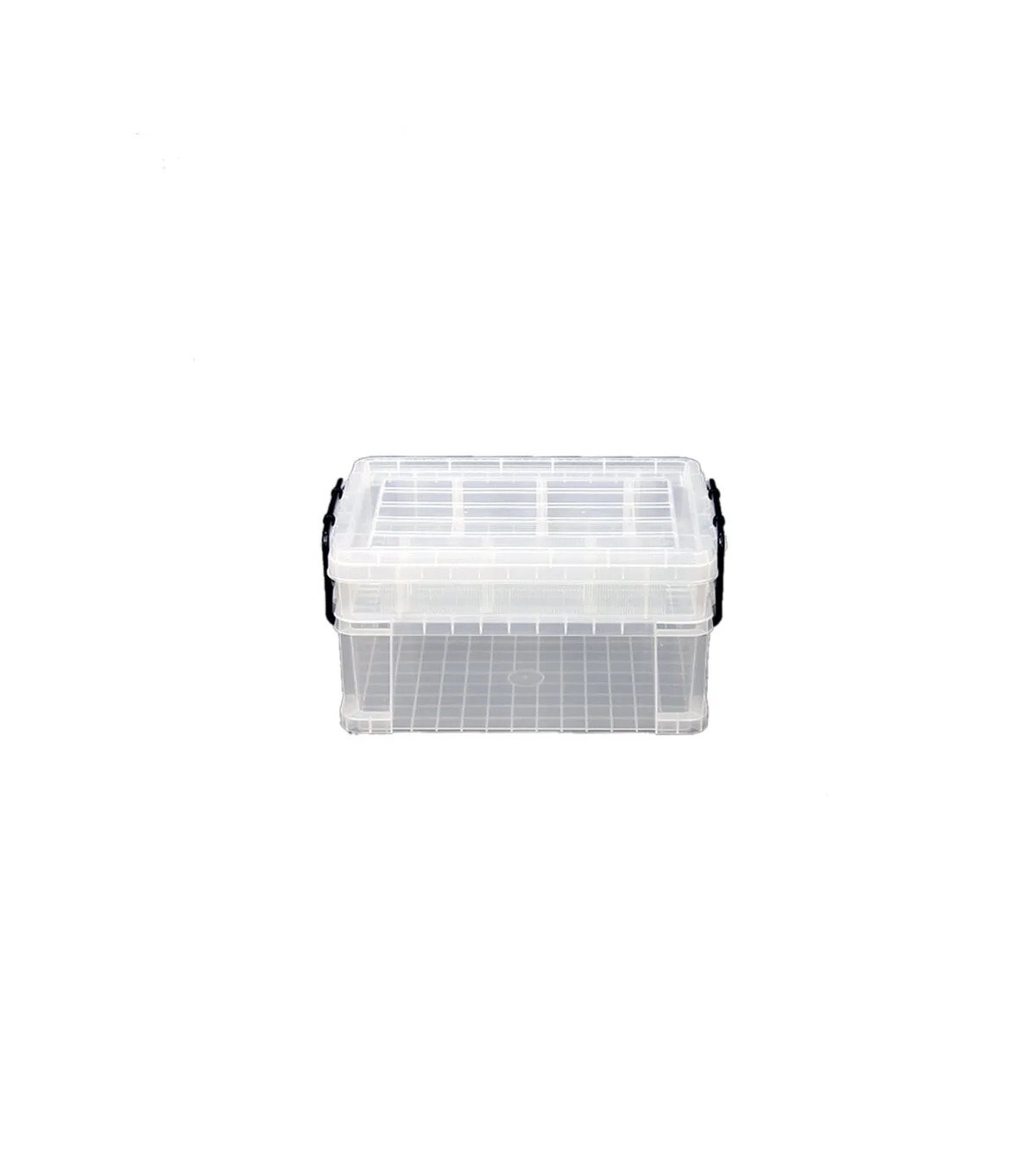 Roomy storage container is perfect for holding larger crafting tools, parts, and other supplies. The clear body and lid make it easy to see what's inside the container without opening it up, and when not in use, stacks neatly with other containers of the same size. Features two latches to keep lid closed and secure when not in use. Comes with 2 extra large, 3 medium and 6 small dividers. The extra large divider may be readjusted to 3 different positions, while the medium and small dividers can be adjusted to a multitude of positions to best fit your needs.