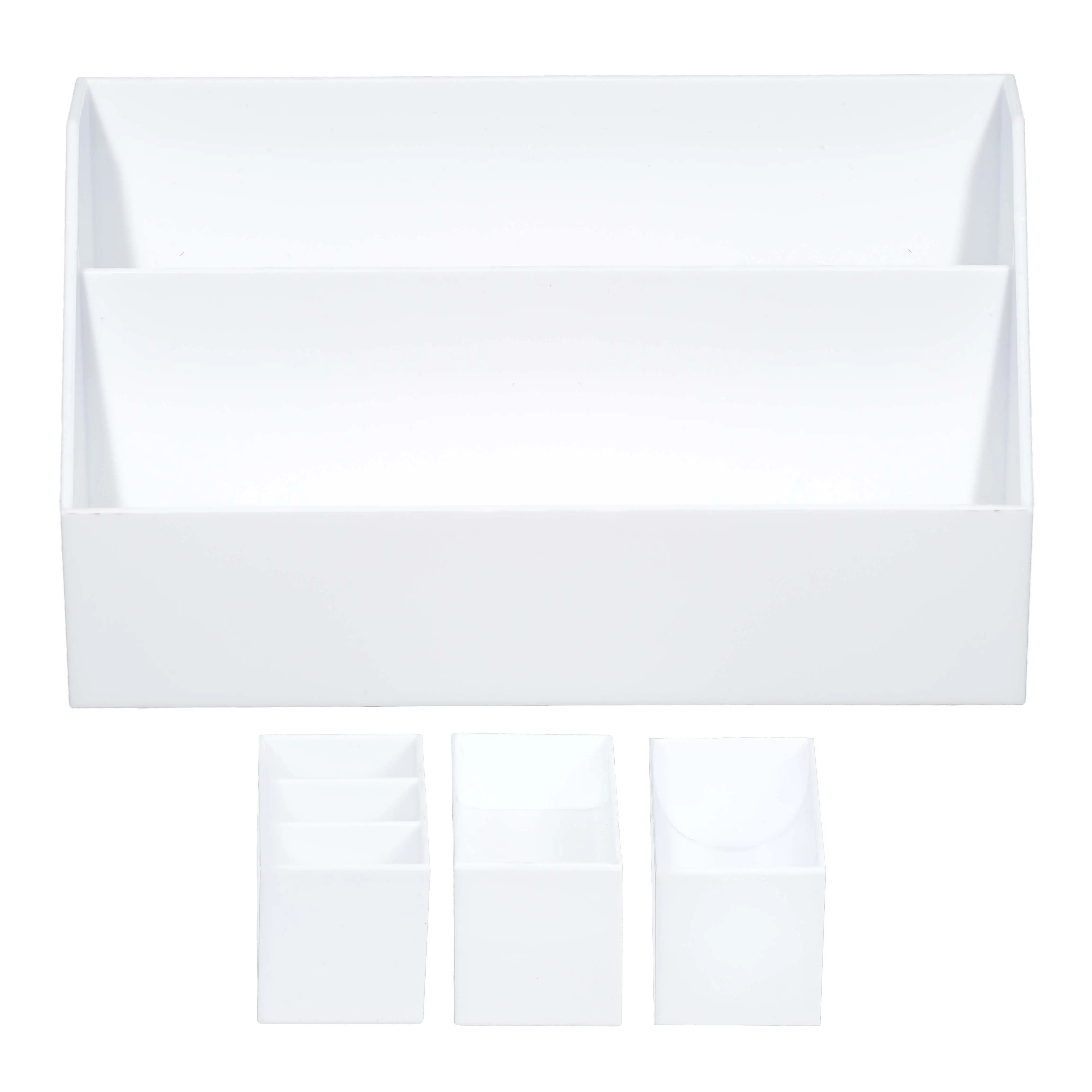 The Top Notch Desktop Organizer - White is just what you need to keep your worktable clean and tidy. This desktop organizer is designed with multiple compartments and sports a white hue. You can use it to store pens, pencils, scissors and other stationery items. It will also make a lovely gift for your little one.